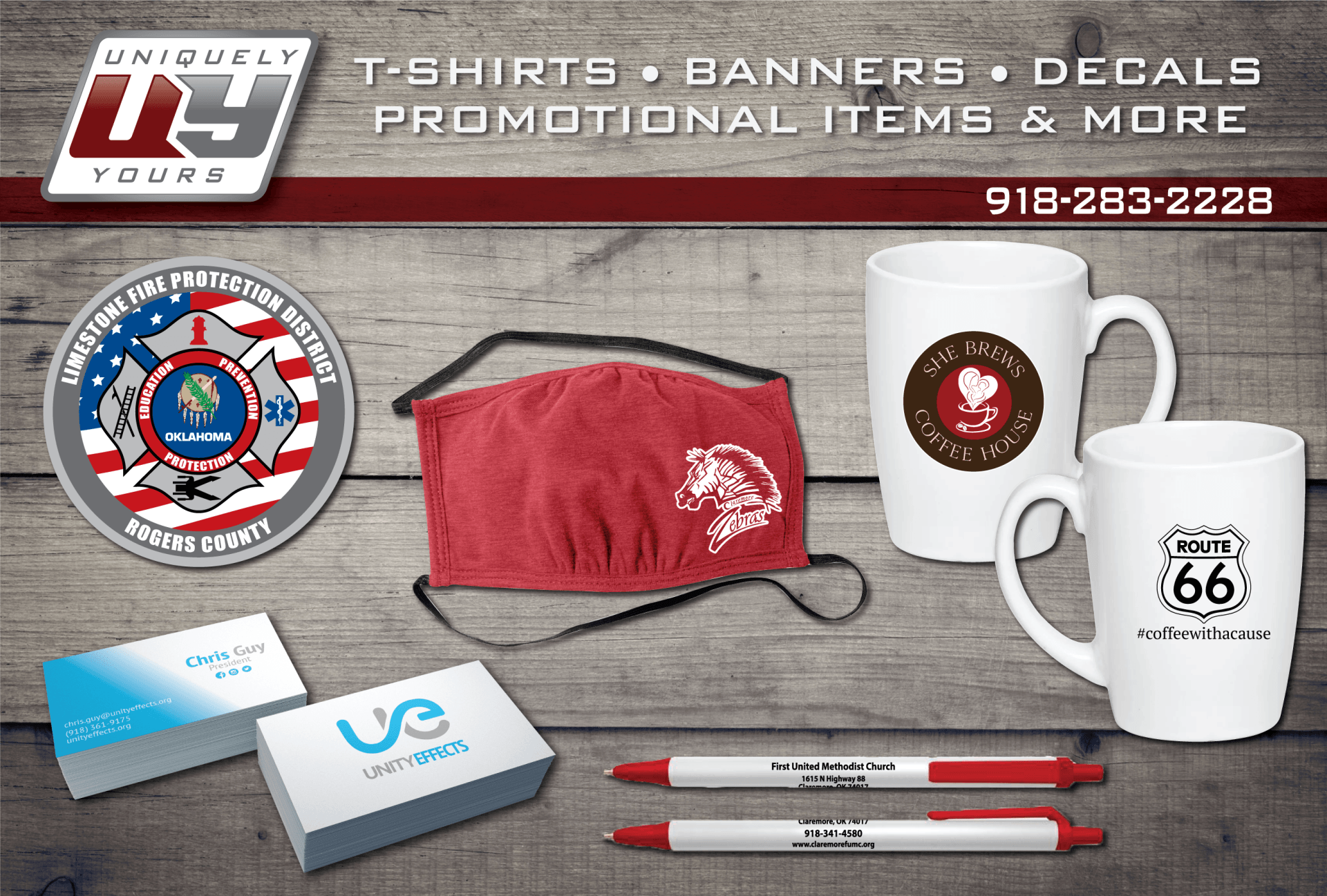 Uniquely Yours Screen Printing opened its doors in 1991 with a mission of providing exceptional attention to superior quality, dependability, creativity, and unsurpassed customer service. As a locally owned and operated family establishment, we strive to exceed our customers' expectations. Our staff offers friendly customer service, exceptional designs, and high quality finished products. You will appreciate quick turnaround times and design help from our professional graphic design team. Contact us today at (918) 283-2228 for a free quote or stop by our location in Claremore, Oklahoma.